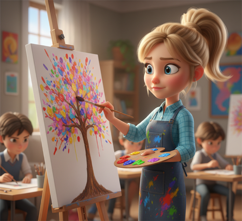 cô Huyền, thầy Sơn 2 bạn BiBi và Susie.